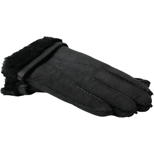 Dolce & Gabbana Black Leather Fur Short Hands Gloves