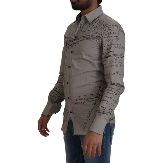 Dolce & Gabbana Gray Printed Cotton Slim Dress GOLD Shirt