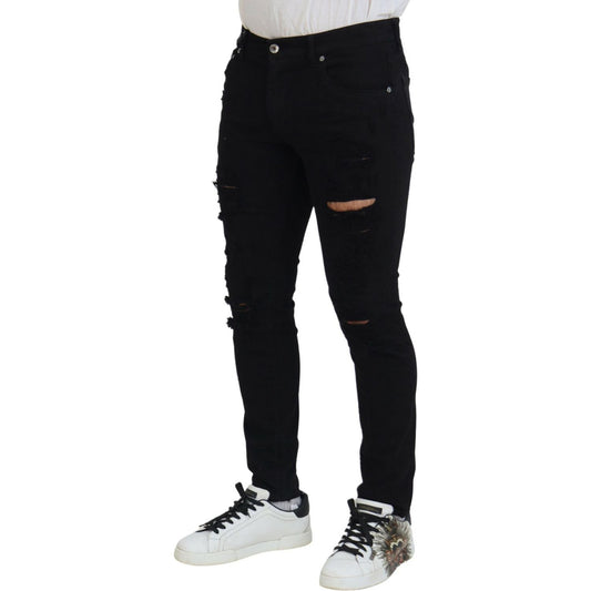 Dolce & Gabbana Black Slim Fit Tattered Denim Cotton Jeans