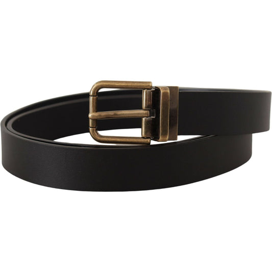 Dolce & Gabbana Black Leather Brass Metal Box Buckle Belt