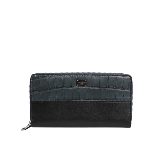 Dolce & Gabbana Black Blue Exotic Leather Men Continental Clutch Wallet