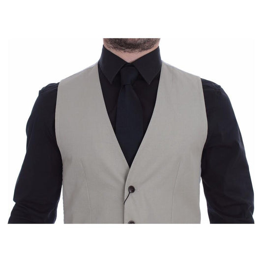 Dolce & Gabbana Beige Cotton Slim Fit Button Front Dress Vest