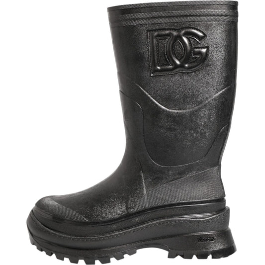 Dolce & Gabbana Metallic Black Pull On Rain Boots Men Shoes
