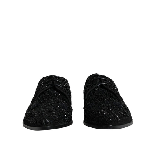 Dolce & Gabbana Black Embellished Suede Derby Formal Shoes