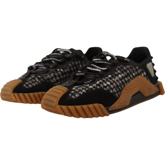 Dolce & Gabbana Black White Fabric Lace Up NS1 Sneakers