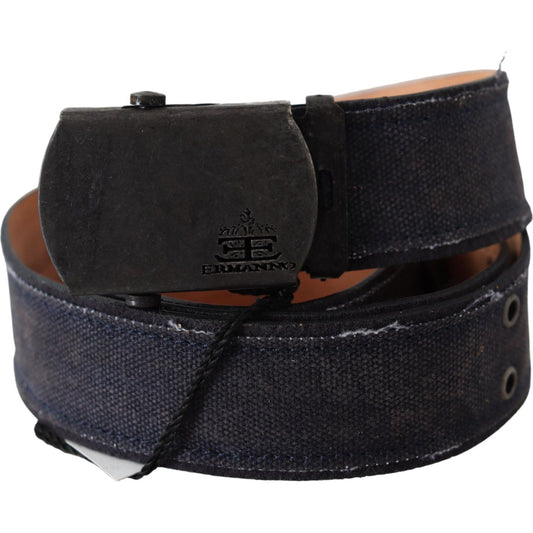 Ermanno Scervino Black Navy Blue Wide Square Rustic Buckle Belt
