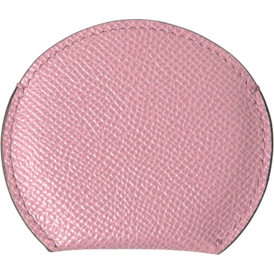 Dolce & Gabbana Pink Calfskin Leather Round Logo Print Hand Mirror Holder