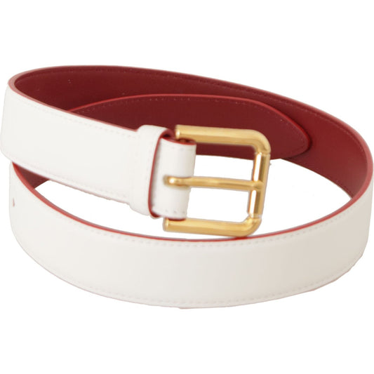 Dolce & Gabbana White Calf Leather Two-Toned Gold Metal Buckle Belt