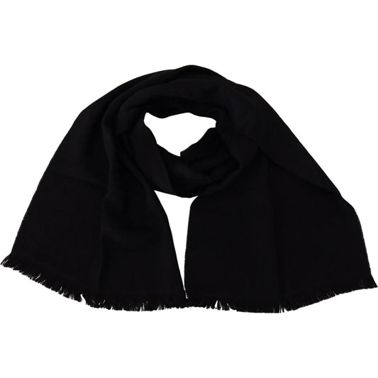 Dolce & Gabbana Black Wool Knitted Wrap Foulard Fringe Scarf