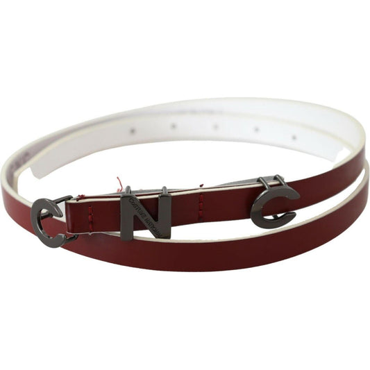 Costume National Maroon Skinny Leather Logo Fashion Belt