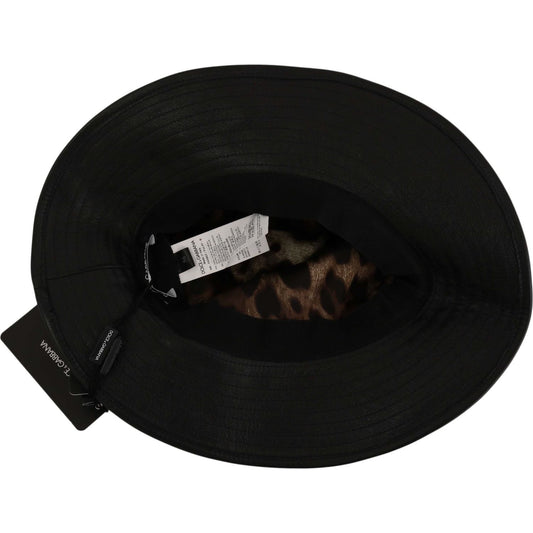 Dolce & Gabbana Black Leather DG Coin Crystal Wide Brim Hat