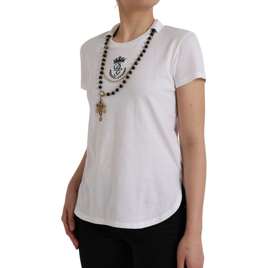 Dolce & Gabbana White Cotton Necklace Short Sleeves T-shirt