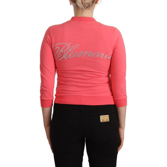 Blumarine Pink 3/4 Sleeve Zip Embellished Sweater