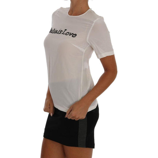 Dolce & Gabbana White Silk ITALIA IS LOVE Blouse T-shirtVendor:Dolce & GabbanaRegular price £519.00 GBPRegular price Sale price £519.00 GBPUnit price / perSale