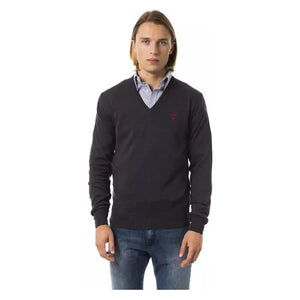 Unleash your impeccable sense of style with Uominitaliani’s masterfully crafted embroidered V-neck sweater. Made from the most luxurious extrafine Merino wool, this Italian-made piece exudes sophistication with a cozy twist. Its assertive gray tone and refined embroidery detail combine for a timeless wardrobe staple that resonates with bold elegance and contemporary flair.