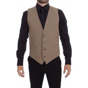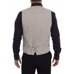 Dolce & Gabbana Beige Cotton Slim Fit Button Front Dress Vest