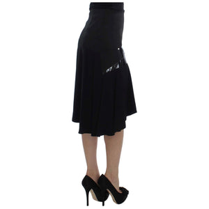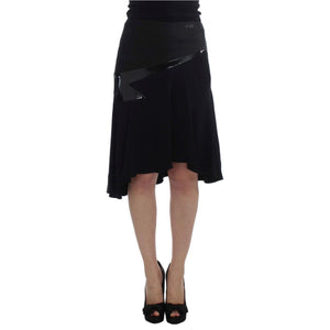 Exte Black Blue Cotton Stretch Straight Skirt