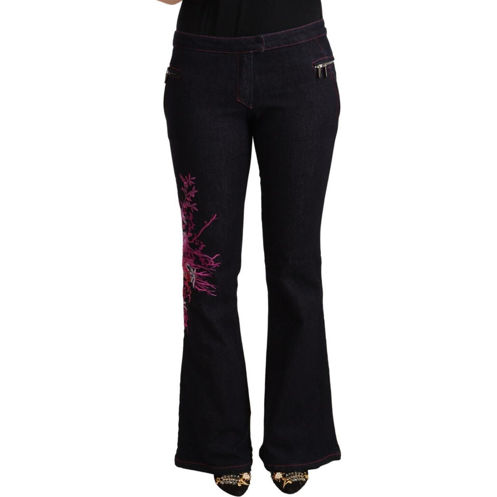 Exte Black Cotton Mid Waist Cotton Flared Jeans
