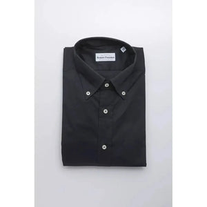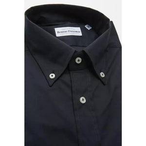 Make a bold statement in your wardrobe with the sleek sophistication of a Robert Friedman classic. This impeccably tailored Button Down Regular Shirt blends seamless comfort with edgy style. Crafted with a premium mix of Cotton, Polyamide, and Elastane, it promises a fit that is both snug and flexible, adjusting effortlessly to your every move. Originating from the discerning craftsmanship of AL, this black staple is a versatile choice for the man whose presence is felt before he’s even seen.