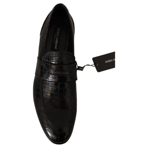 Dolce & Gabbana Black Crocodile Leather Slip On Moccasin Shoes