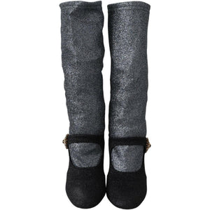 Dolce & Gabbana Black Crystal Mary Janes Booties Shoes