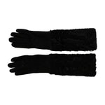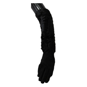 Dolce & Gabbana Black Elbow Length Mitten Suede Fur Gloves