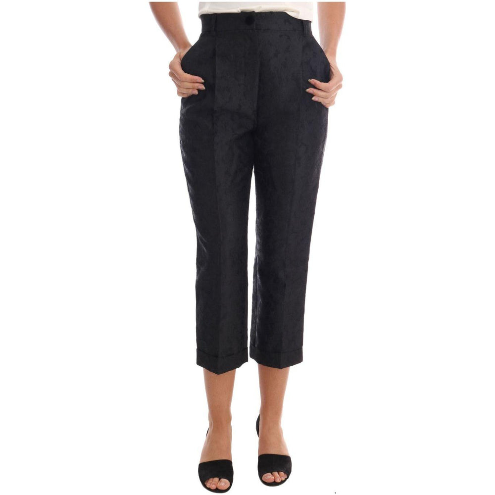 Dolce & Gabbana Black Floral Brocade Capri Pants