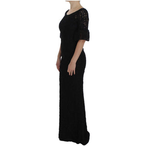 Dolce & Gabbana Black Floral Lace Long Bodycon Maxi Dress