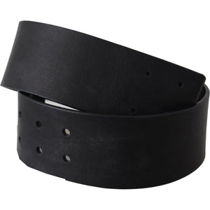 GF Ferre Black Genuine Leather Wide Logo Waist Belt