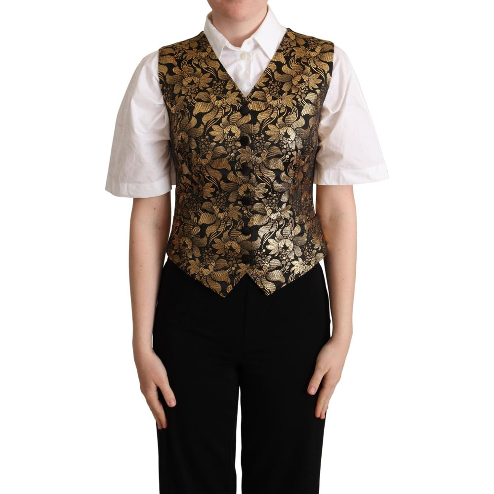 Dolce & Gabbana Black Gold Jacquard Silk Waistcoat Vest
