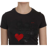 Exte Black Hearts Print Short Sleeve Casual Shirt Top