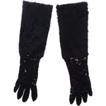 Dolce & Gabbana Black Lace Wool Lambskin Fur Elbow Gloves