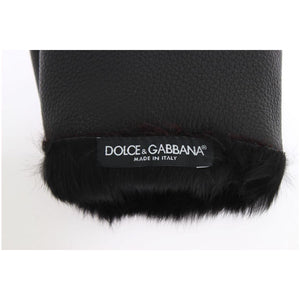 Dolce & Gabbana Black Leather Bordeaux Shearling Gloves