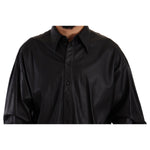 Dolce & Gabbana Black Leather Button Down Men Collared Jacket
