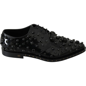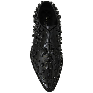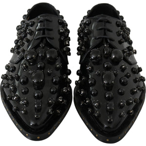 Dolce & Gabbana Black Leather Crystals Dress Broque Shoes