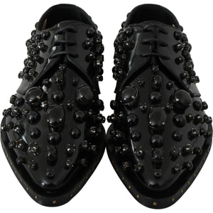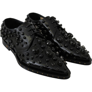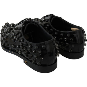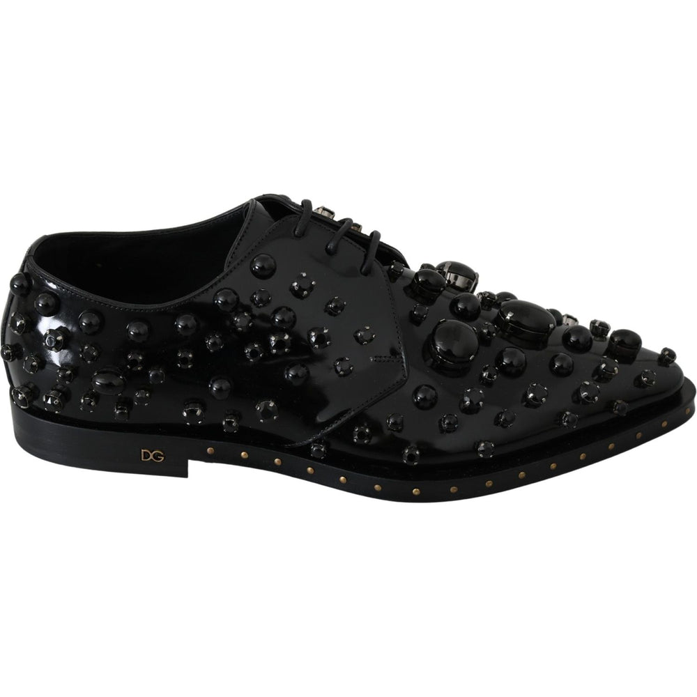 Dolce & Gabbana Black Leather Crystals Dress Broque Shoes