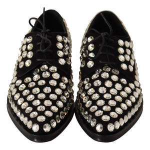 Dolce & Gabbana Black Leather Crystals Lace Up Formal Shoes