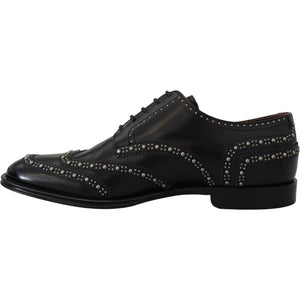 Dolce & Gabbana Black Leather Derby Dress Studded Shoes