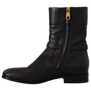 Dolce & Gabbana Black Leather Flats Logo Short Boots Shoes