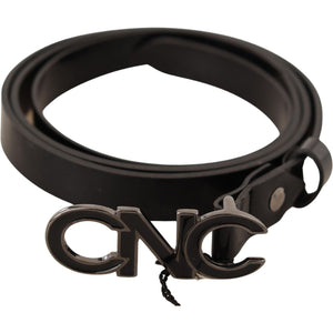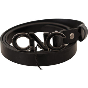 Costume National Black Leather Letter Logo Buckle Belt