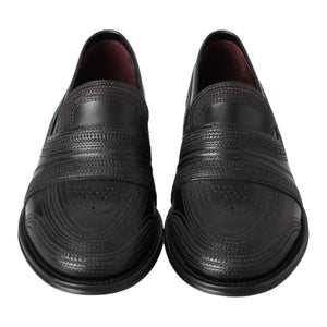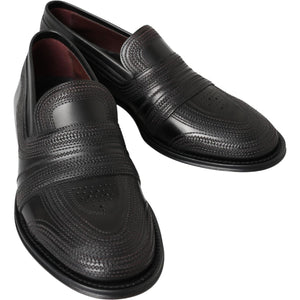 Dolce & Gabbana Black Leather Slipper Loafers Stitched Shoes
