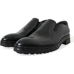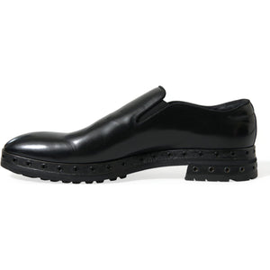 Dolce & Gabbana Black Leather Studded Loafers Dress Shoes