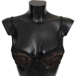 Roberto Cavalli Black Leopard Nylon Push Up Bra Underwear
