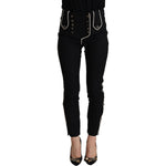 Dolce & Gabbana Black Mid Waist Button Embellished Slim Fit Pants