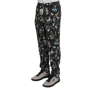 Dolce & Gabbana Black Musical Instrument Sleepwear Pants