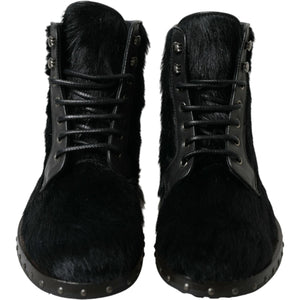 Dolce & Gabbana Black Pony Style Leather Mid Calf Boots Shoes