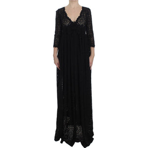 Dolce & Gabbana Black Ricamo Knitted Full Length Maxi Dress