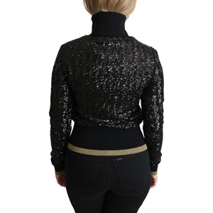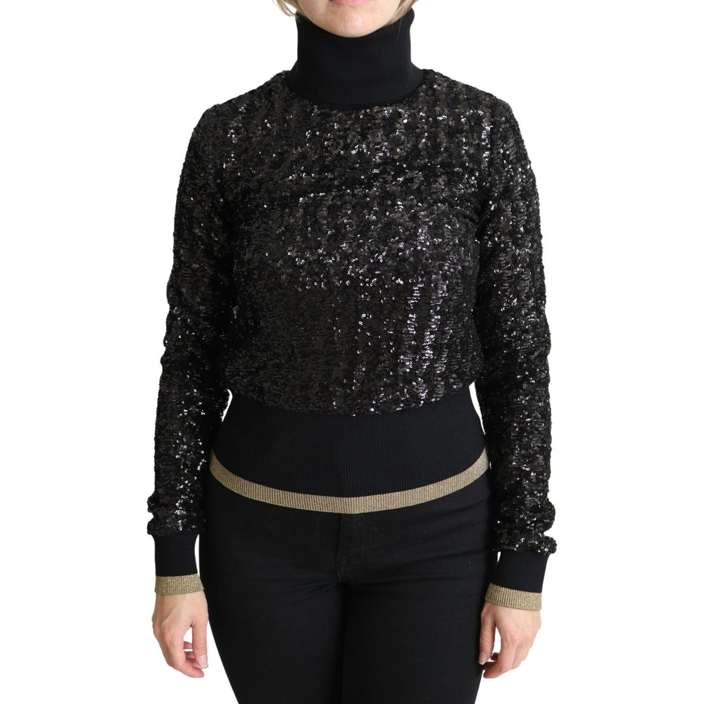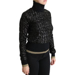 Dolce & Gabbana Black Sequined Knitted Turtle Neck Sweater