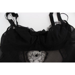 Dolce & Gabbana Black Silk Floral Lace Lingerie Top
