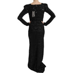 John Richmond Black Silk Full Length Sequined Gown Dress